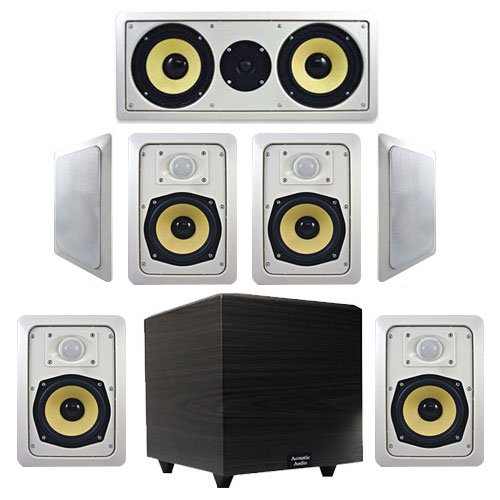Cheapest Price Acoustic Audio 7-Piece 5.25 (HD525) HD In-Wall Speaker System w/400W 10 Powered Subwoofer