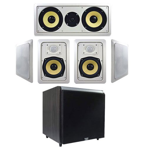 Discount 5-Piece 5.25 (HD525) HD In-Wall Speaker System w/Black 600W 10 HD Powered Home Subwoofer