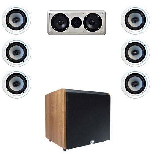 This Acoustic Audio 7.1 channel multi-speaker system features six, 8" in-wall/ceiling speakers, a 6.5" center channel and one maple 12" powered home audio subwoofer. These IC8 180 watt in-wall speakers mount flush in a wall or ceiling for nearly invisible installation and have paintable white grillsIC8 8 Inch In-Wall Speaker System w/Center Channel & 12 Maple Subwoofer Do not Miss!! This Acoustic Audio 7.1 channel multi-speaker system features six, 8" in-wall/ceiling speakers, a 6.5" center channel and one maple 12" powered home audio subwoofer. These IC8 180 watt in-wall speakers mount flush in a wall or ceiling for nearly invisible installation and have paintable white grills... IC8 8 Inch In-Wall Speaker System w/Center Channel & 12 Maple Subwoofer