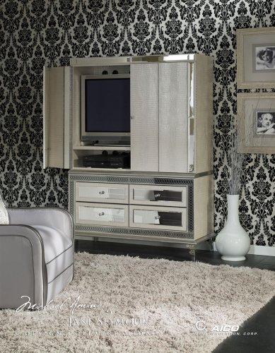 With tantalizing textures and decadent designs, Aico Amini Hollywood Swank Crystal Leather Armoire media cabinet is bound to leave an impression in your home. The Aico Amini Hollywood Swank Crystal Leather Armoire carries an amazing gator finish and features two doors as well as four drawers. The stAico Amini Hollywood Swank Crystal Leather Media Cabinet Do not Miss!! With tantalizing textures and decadent designs, Aico Amini Hollywood Swank Crystal Leather Armoire media cabinet is bound to leave an impression in your home. The Aico Amini Hollywood Swank Crystal Leather Armoire carries an amazing gator finish and features two doors as well as four drawers. The st... Aico Amini Hollywood Swank Crystal Leather Media Cabinet